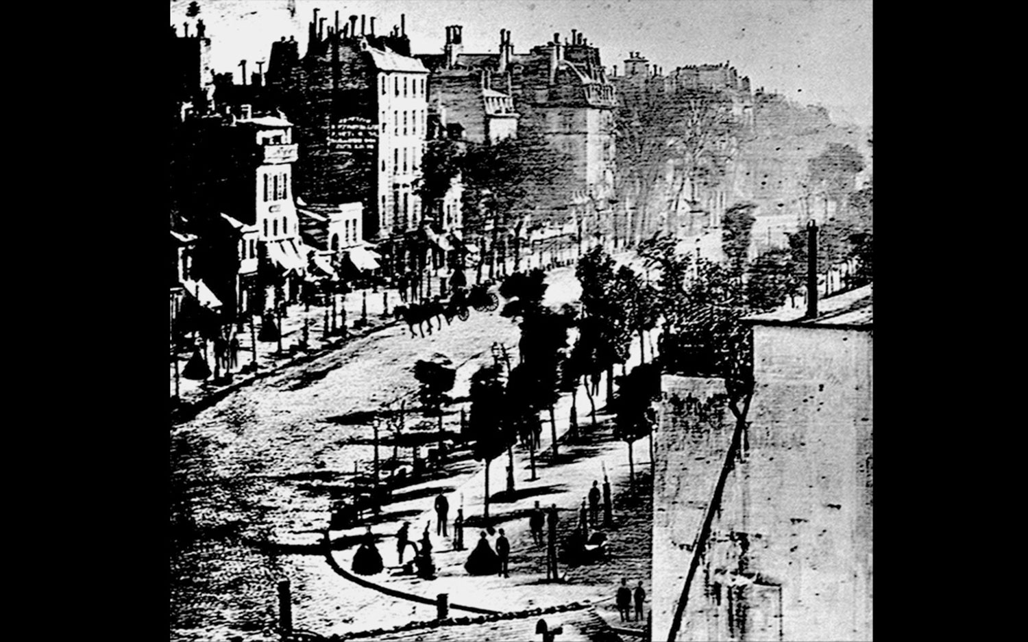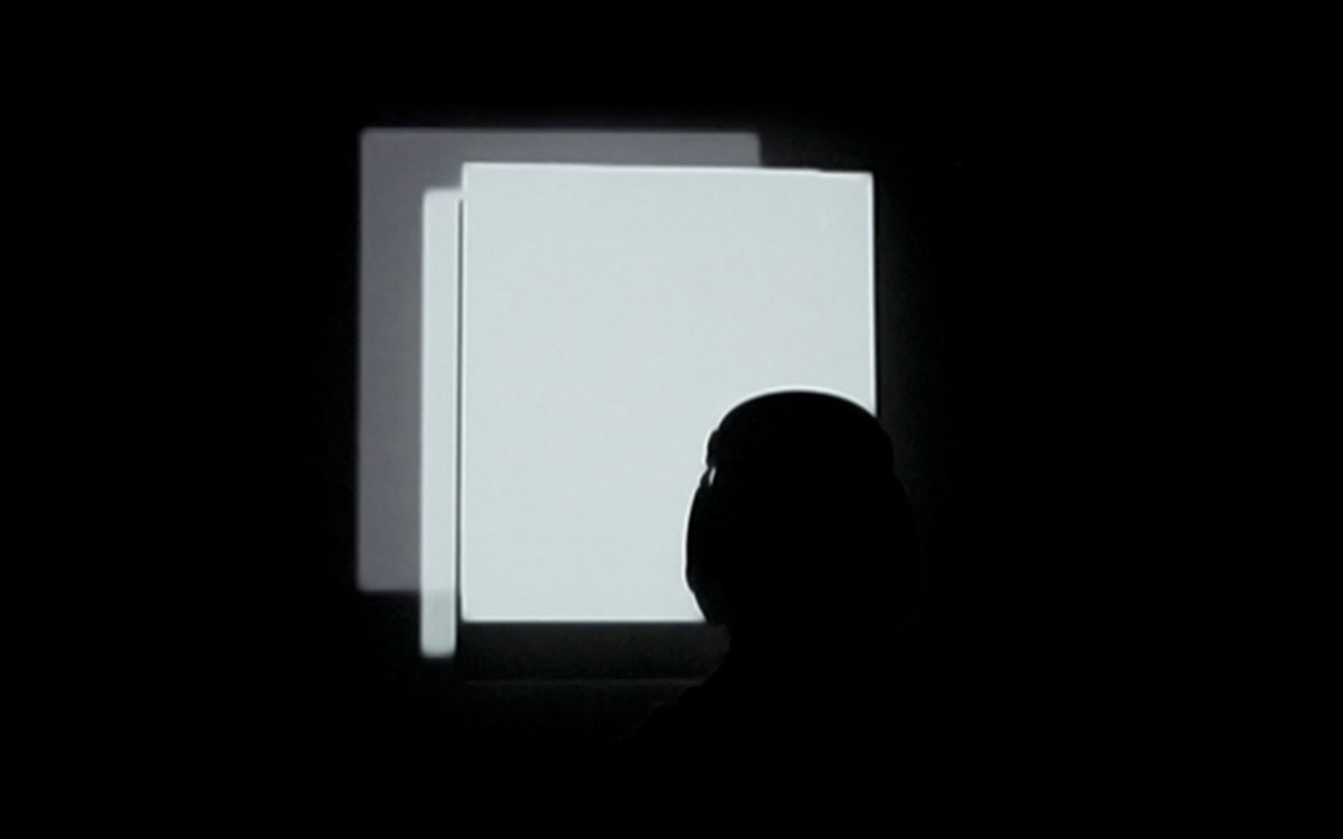 Bearing in mind a visitor’s “tired eye” saturated with millions of visual information, the installation insist on engaging the whole human body in perceiving the project. “1 0 0 1” employs light flashes and binaural beats to create the illusion, the moment when the observer finally gazes at 1838 photography by Louis Daguerre, titled “Boulevard du Temple”. The work reconstructs the possible “truthful” depiction of this freeze moment. The observer can discern black lines/blur in motion until the moment when it becomes obvious these are people, passers-by.