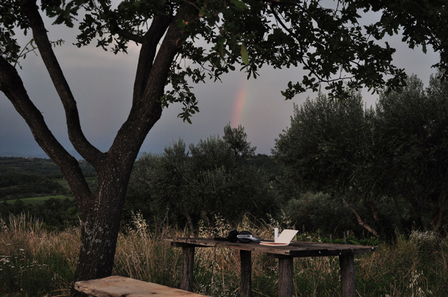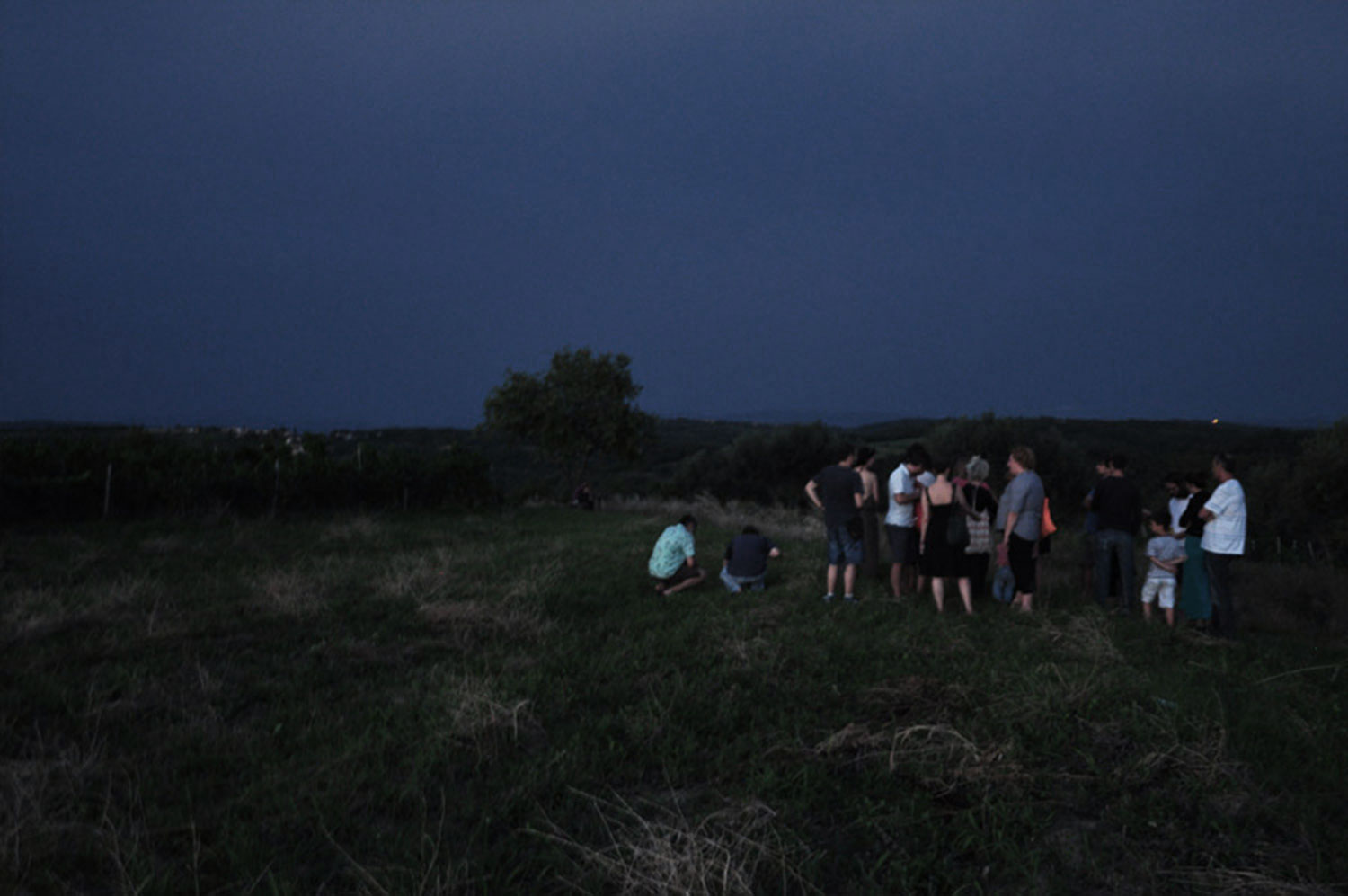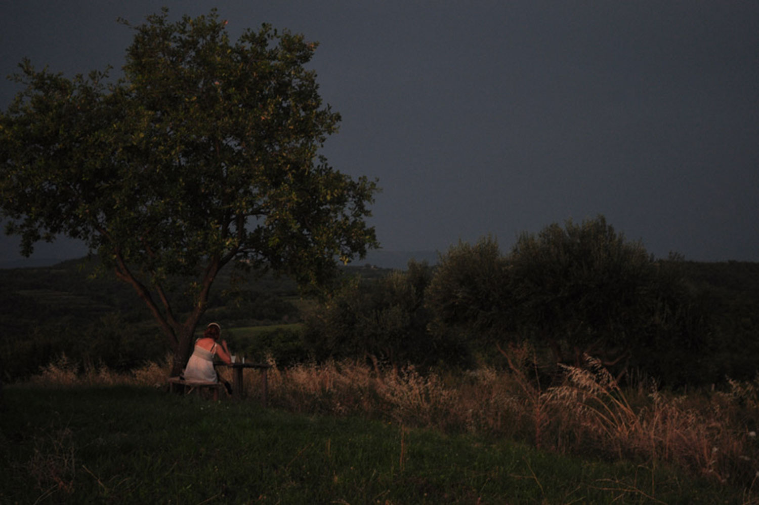 The work contemplates and investigates the quietest part of tha day and consist of one b/w instant film photography, a sound piece and a handwritten poetry; Virgin, vivid and in his all beauty today. The photography is showing the exactly surrounding landscape, taken 20 minutes before the first sun ray illuminates the green hill. The sound is a phonographic record between the moment of the instant image and the first light.