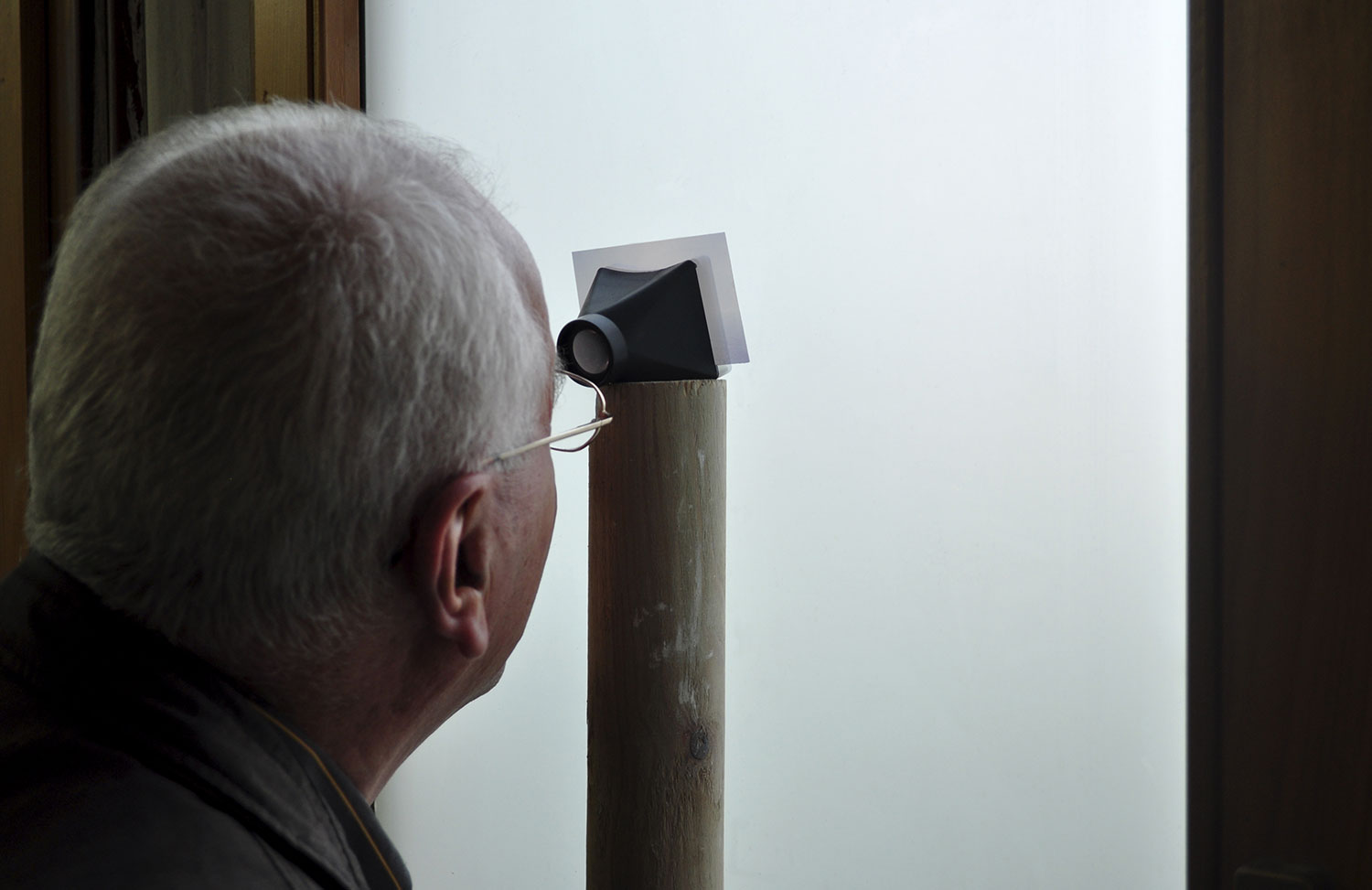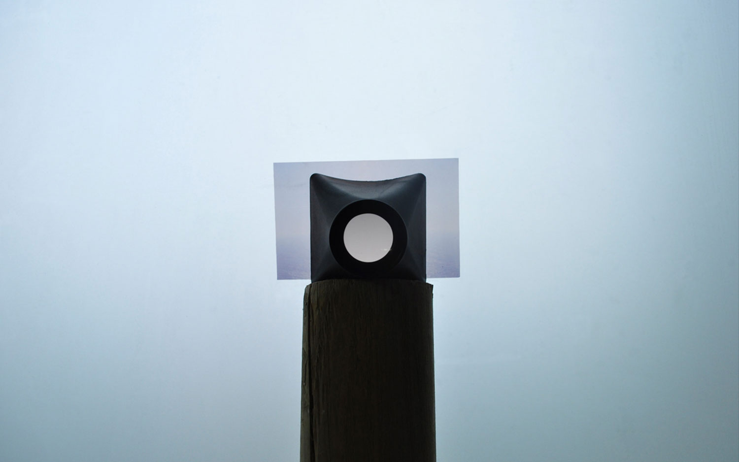 The content of the information placed in the middle of the frame is lost in a white spot. The meaning of the scene is constituted around its edges and we are trying to grasp it. The picture shows an open sea. The site is Cabo de Roca in Portugal, the westernmost cape of Europe, a place that Luis Vaz de Camoes describes, "Here, where the land ends and the sea begins". This landscape is mediated by the image, the original slide is inserted into the single slide viewer device in natural light conditions. The light that penetrates illuminates the scene within, from the "inside" and contributes to the creation of the effect of the projected or screen image. The image is narrativized and the work has been concentrated on the time logic shaping the meditation of the state of flux, transience and nature.