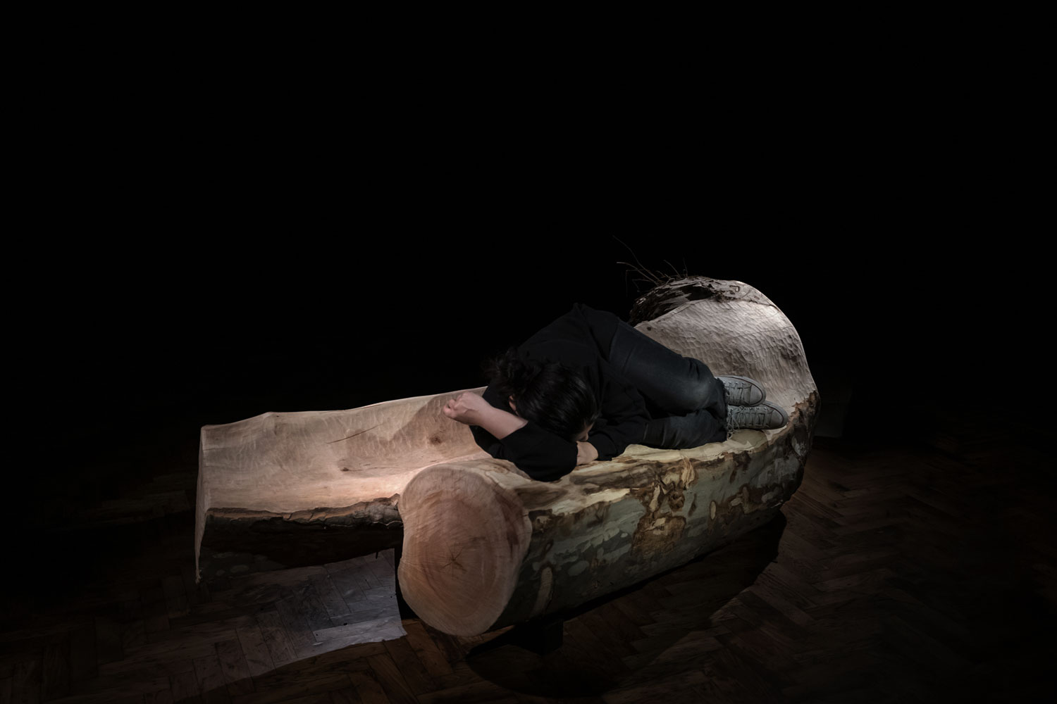 8.1 sound channel, 2k video projection with ultrasonic speakers, objects, wood