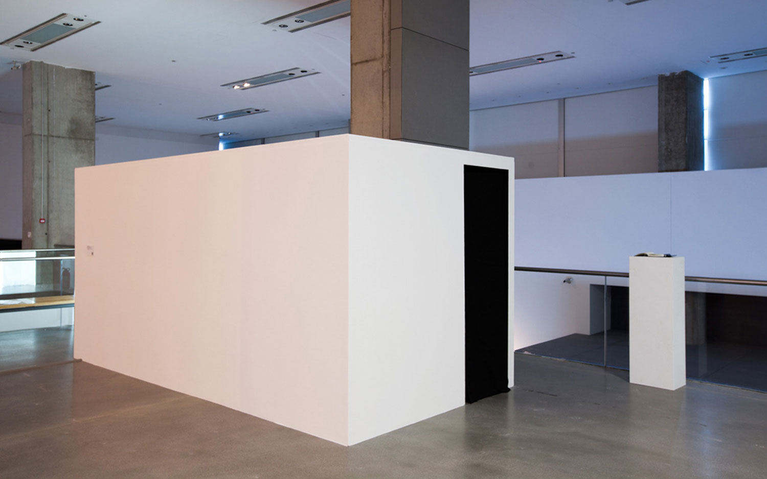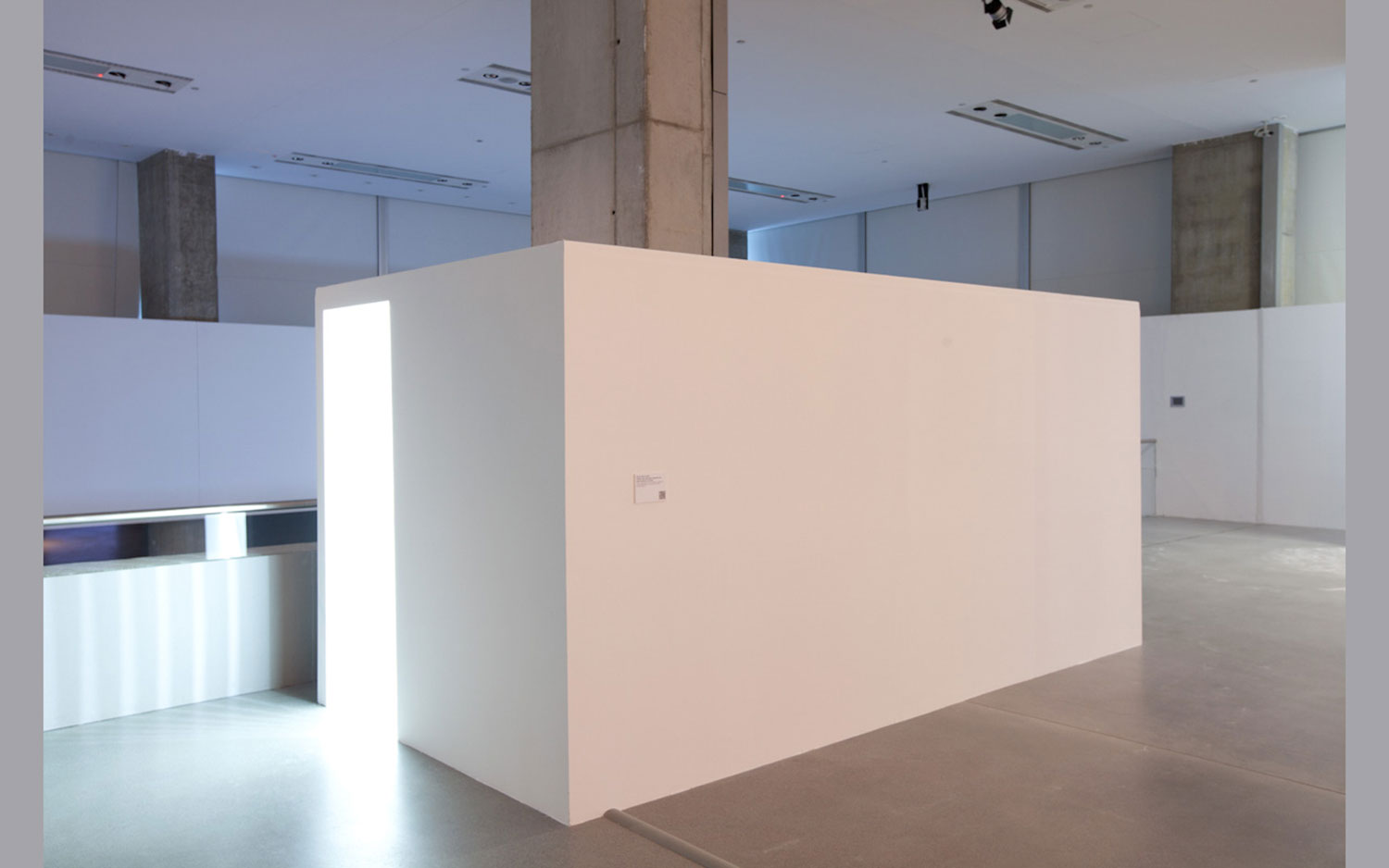 The installation is a study and investigation of the spatial-perceptive dialogue (internal and external) and insists on strengthening and fusion the geometry of senses. It consist of two spaces, one “filled” with white light, and other completely dark where can be heard alternations of sound frequencies between 20 and 20 000 Hz.