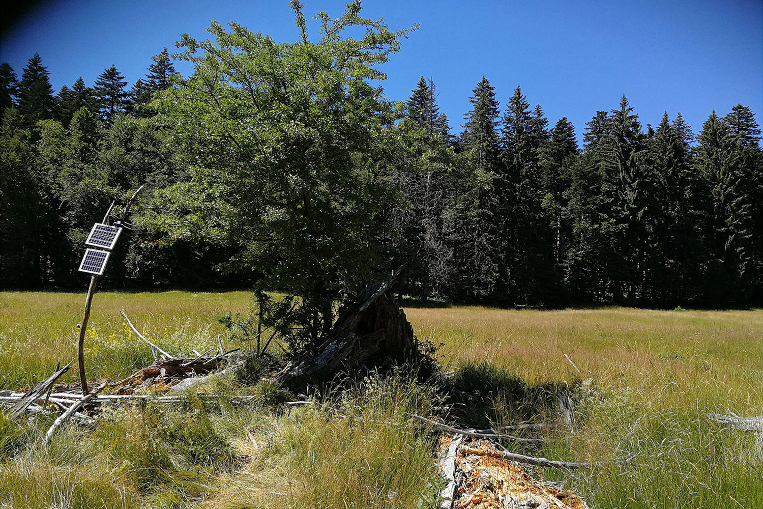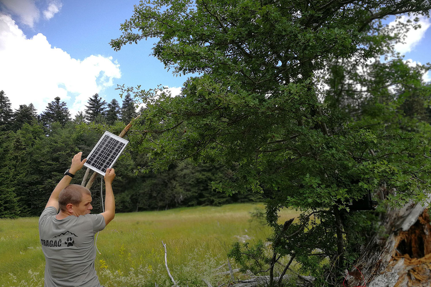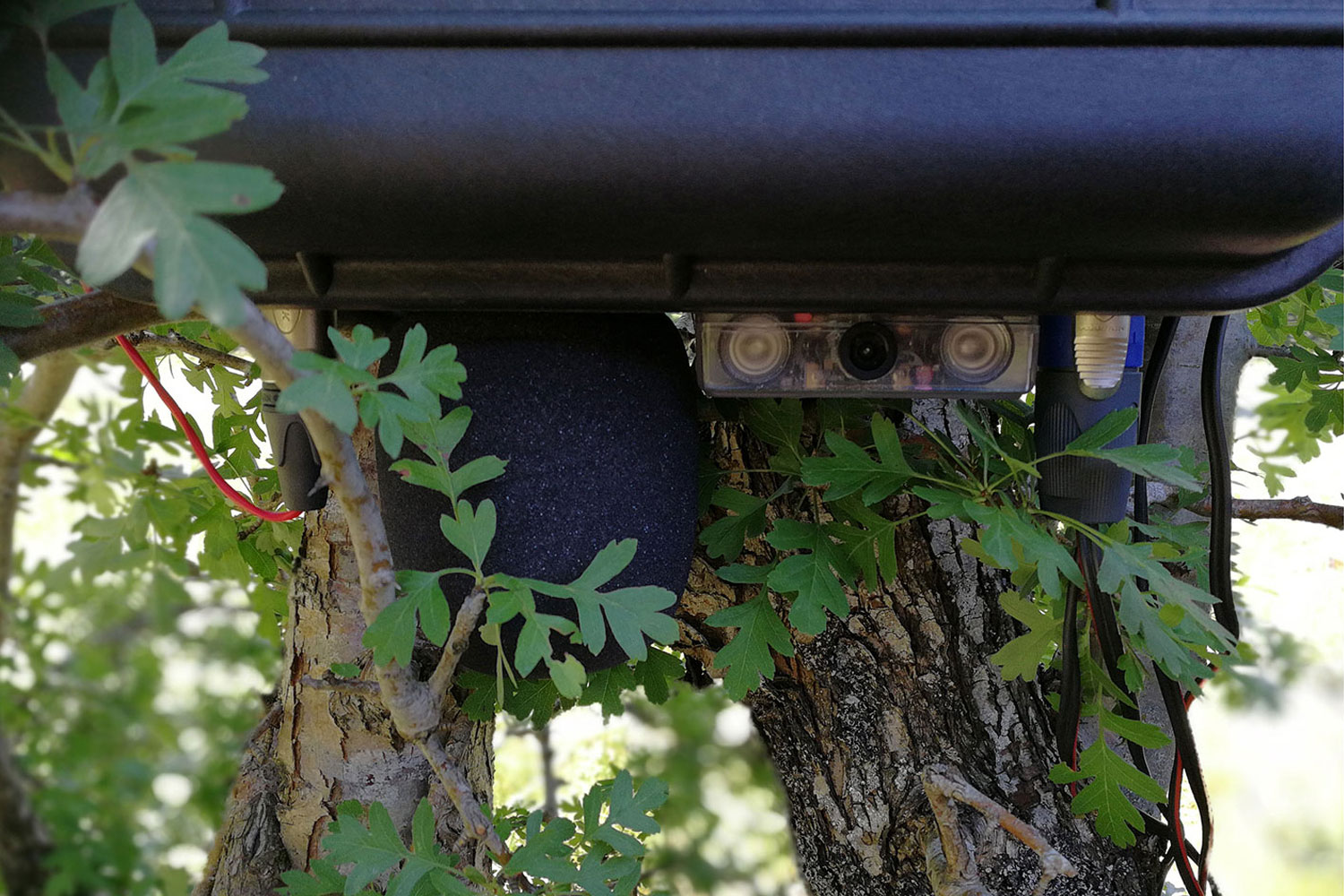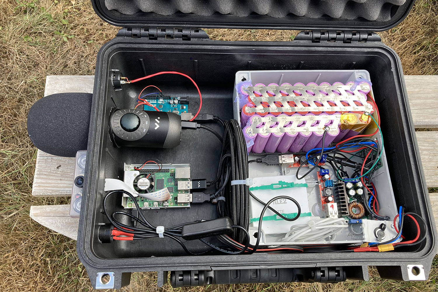 solar panels, motion sensor, battery pack, ambisonic mic, infrared camera, mobile net system
