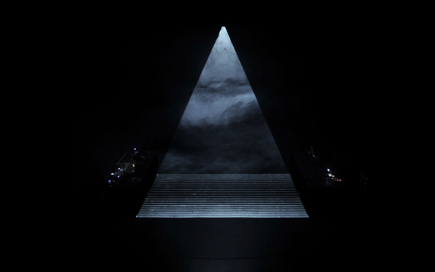 Messmatik and Azot immerse the audience in a deeply evocative environment, alternating rigid geometrical structures with fluid dry-ice artifacts. The composition tethers around a gradually drifting subsonic pulse, modulating other strata into a rich maze of spectral overtones. Entropic particles align themselves geometrically, shifting in and out of focus with addition of every new layer. The space heaves, subsuming the audience and turning them into pillars, vestiges of some lost sacred geometries… (I.B.).