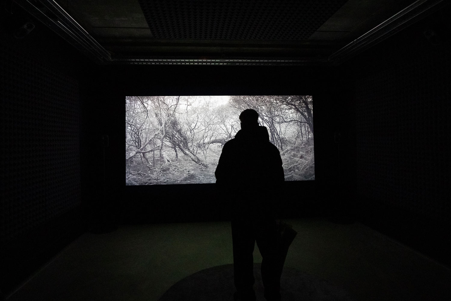 8.1 sound channel, 2k video projection (20'), objects, photography, motion sensors