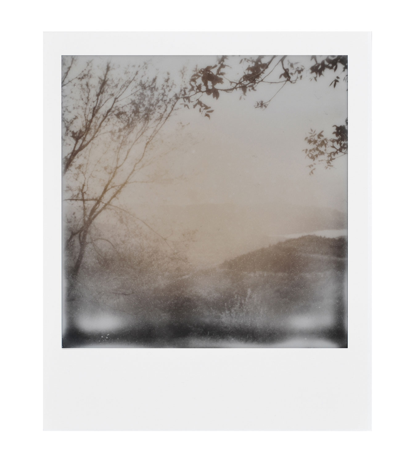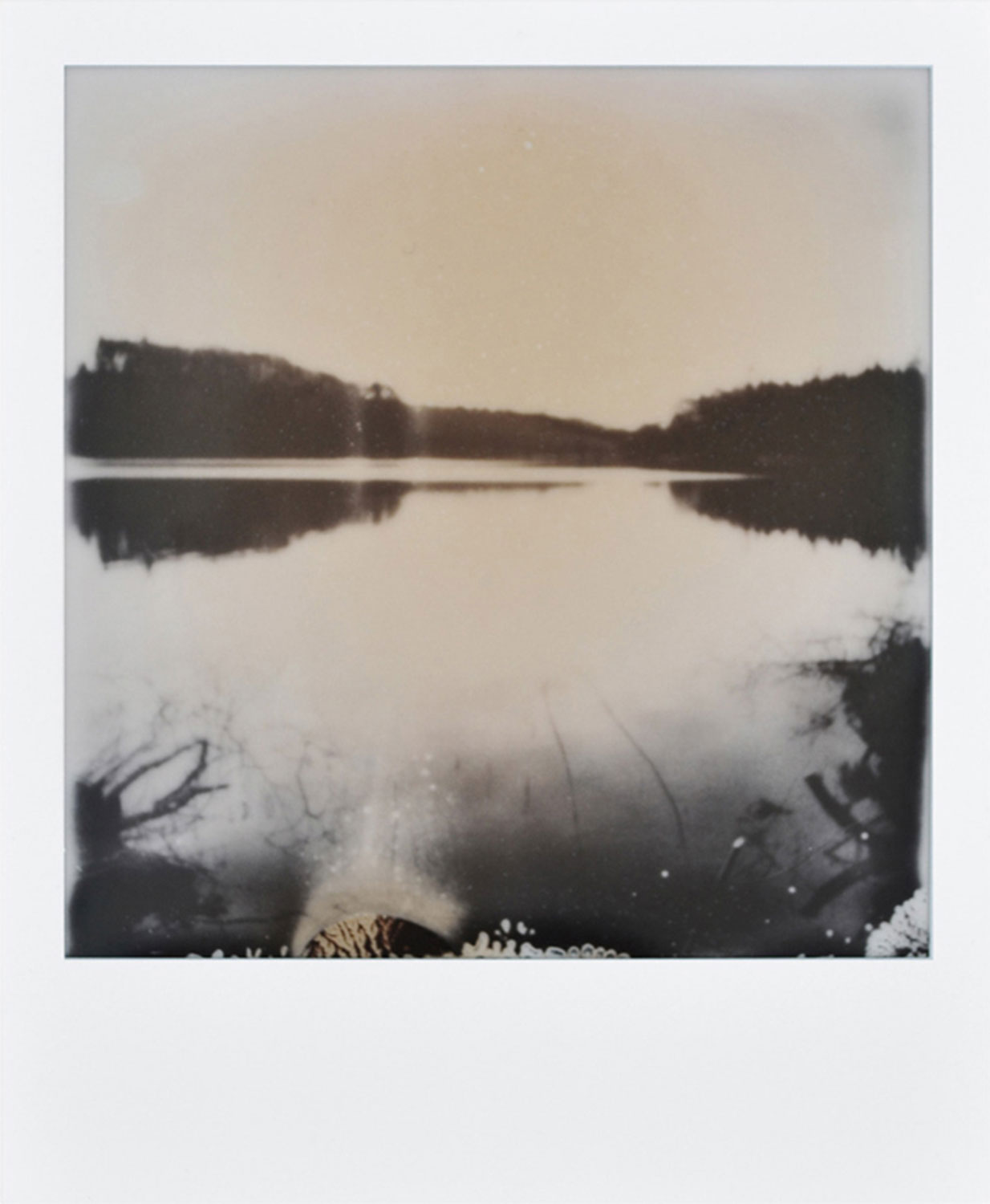 Undefined Wildness starts with the found 16 mm b&w film piece (57 frames) from the late 1950s, depicting a person with sticks in his hands traversing a snow storm with a huge burden on his back. The footage was cleaned, restored and animated, and around it with intertwining of different media the story is built. The narrative plays with the relationship of size, proximity and distance. Opposite to the man there is a 16mm film of a mountain covered with clouds. The instant b&w images are showing three landscapes of one possible day; close view in front of the lake before the dawn, the snow forest during the day and a top of the hill before the sunset.