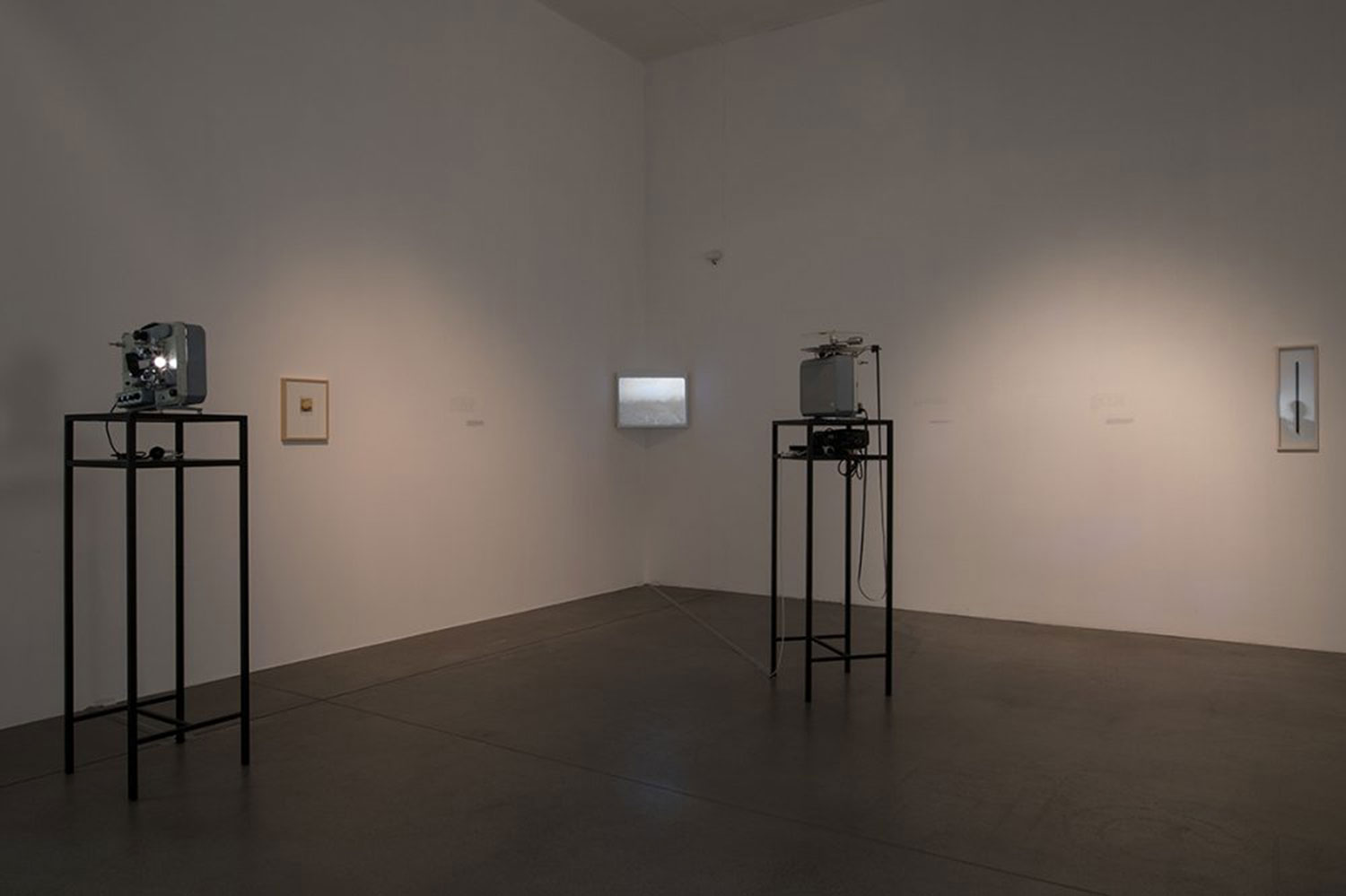 16mm projector, 2HD video channels, polaroids, text on wall