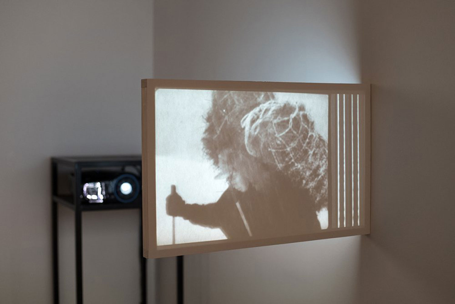 The inevitability of the Sun. The 16mm projector is running, the light is shaped in a bright yellow circle.